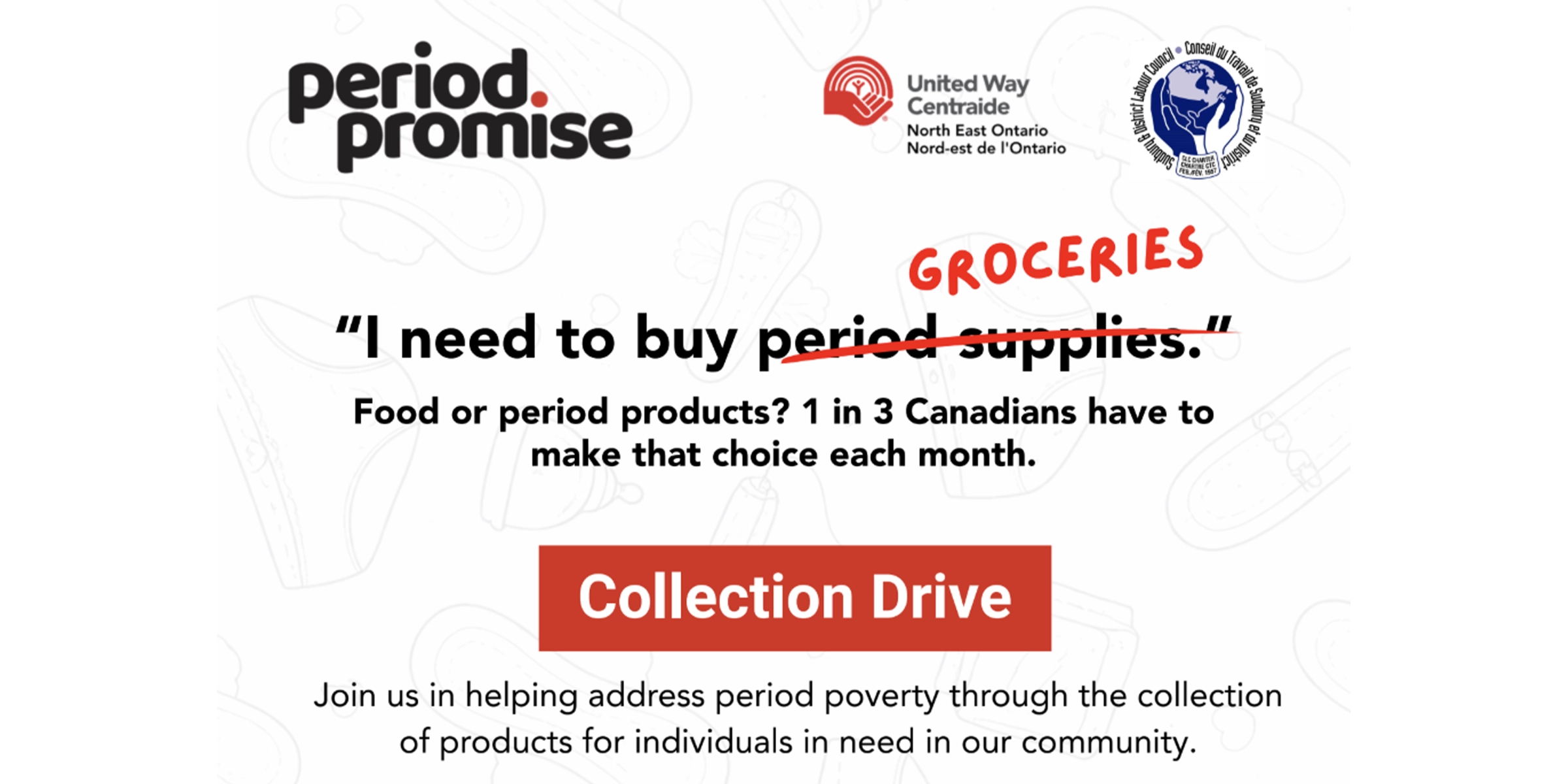 Apr. 08, 2026 - Apr. 08, 2026 Join us in helping address period poverty through the collection of products for individuals in need...